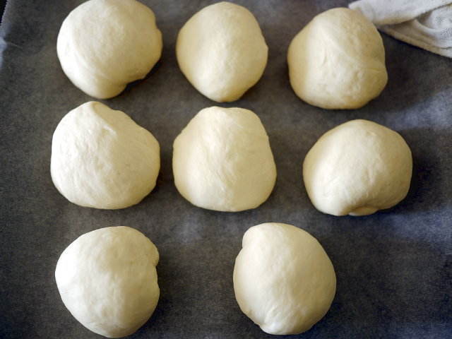 これはレシピになかったけど、念のため8等分したあと、丸めてベンチタイムもとってみた。