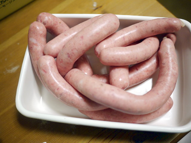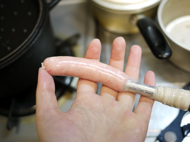 もう半分のソーセージは、は70度くらいのお湯で静かに加熱して火を通しました。